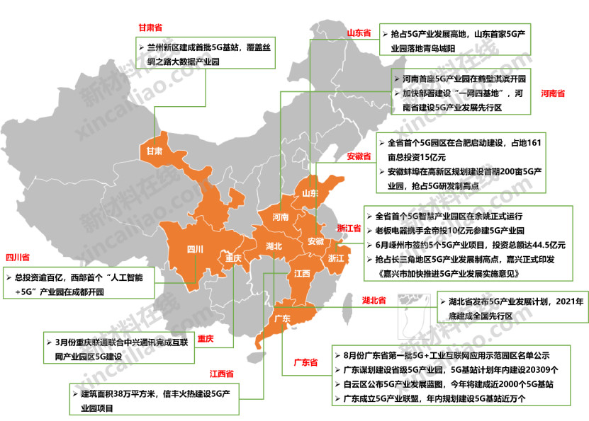 2019年中國部分省市5G產(chǎn)業(yè)建設(shè)情況一覽