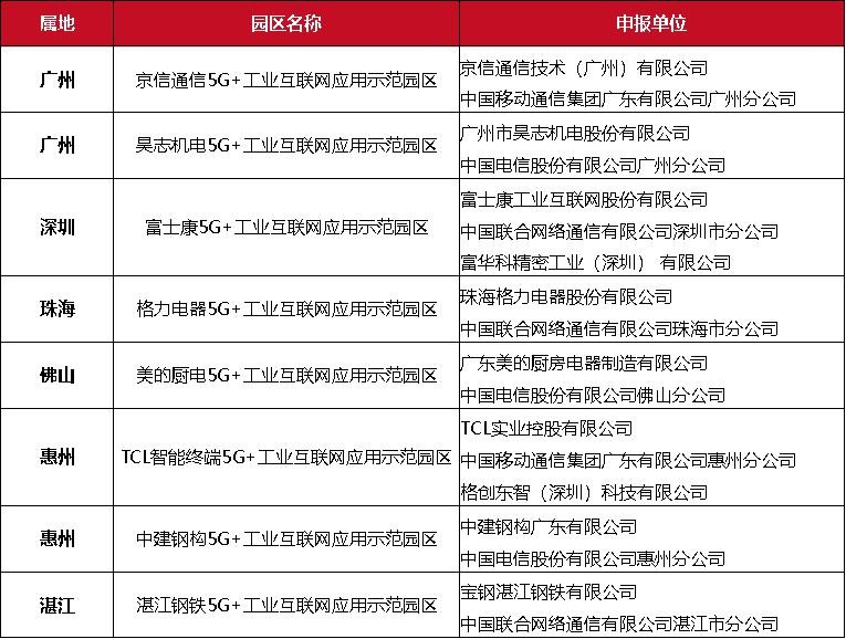 1、8月份廣東省第一批5G+工業(yè)互聯(lián)網(wǎng)應(yīng)用示范園區(qū)名單公示8月26號,廣東省工業(yè)和信息化廳發(fā)布了廣東省第一批5G+工業(yè)互聯(lián)網(wǎng)應(yīng)用示范園區(qū)名單,第一批示范名單共有8個園區(qū)給予了公示,涉及18家申報單位,詳細名單和申報單位如下: