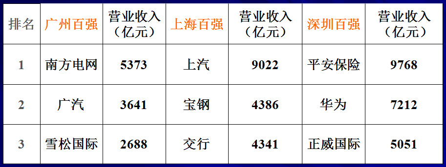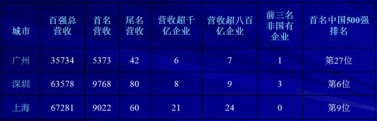 穗滬深企業(yè)百?gòu)?qiáng)數(shù)據(jù)對(duì)比(億元、家)