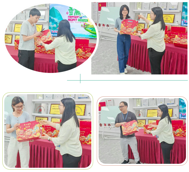 5月28日,工會主席親自將粽子禮盒送到員工手中,每一份粽子的分發(fā),都是工會委員會對員工辛勤付出的認可與感激,也是對公司大家庭溫暖氛圍的進一步營造。這份來自公司的關(guān)懷,讓員工們在忙碌的工作中感受到了家的溫暖。收到粽子的員工們臉上洋溢著幸福的笑容,他們紛紛表示,這份禮物將不僅是一份味蕾的享受,更是一份心靈的慰藉。有的員工恨不得立即與同事分享這份美味,有的則小心翼翼地保存起來,打算與家人共度晚餐時共享這份甜蜜。